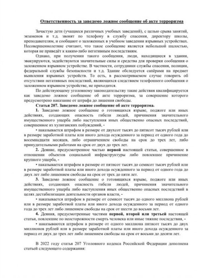 ОТВЕТСТВЕННОСТЬ ЗА ЗАВЕДОМО ЛОЖНОЕ СООБЩЕНИЕ ОБ АКТЕ ТЕРРОРИЗМА